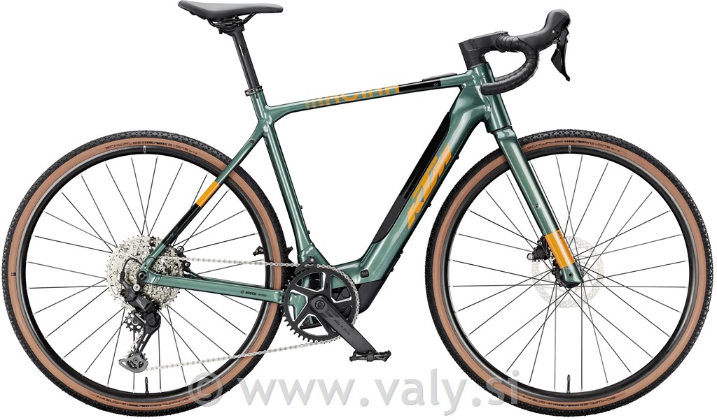 KTM električno gravel kolo Macina Gravelator SX 20 zelena - oranžna XS