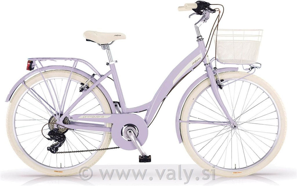 Kolo MBM Primavera je elegantno in prefinjeno žensko mestno kolo izpopolnjeno v vseh podrobnostih. Nizek okvir ter vesele in živahne barve mu dajejo nov in moderen slog. Udoben, mehek sedež in nedrseča pedala naredijo kolo praktično in udobno, idealno za vsakodnevno uporabo v mestu in na podeželju.