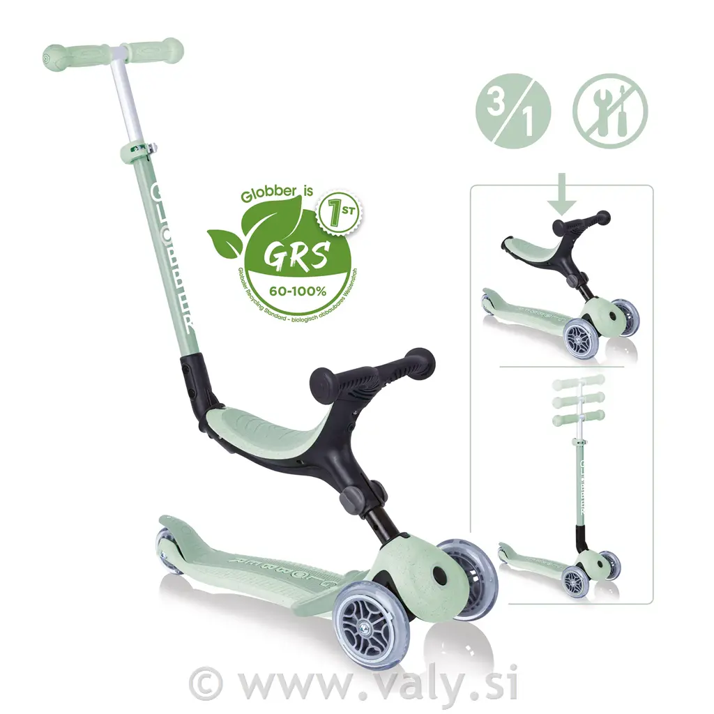 Iščete najboljši otroški skiro? Globber Go•Up Ecologic iz recikliranih materialov raste z otrokom od 15. meseca. Brezplačna dostava ali prevzem v trgovini Valy!