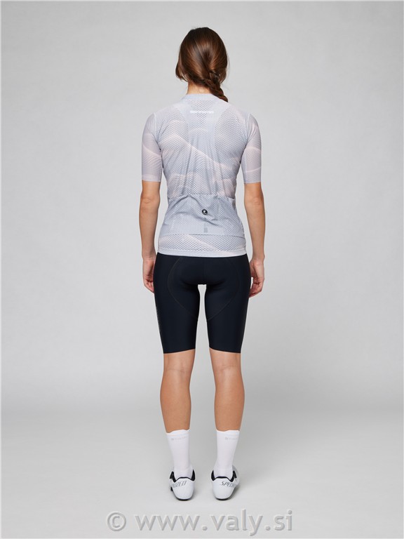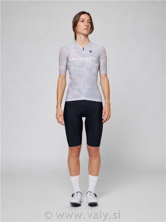 - Drynet tkanina in Race Fit: Majica je v celoti izdelana iz 100 % perforiranega materiala Drynet, ki zagotavlja izjemno lahkotnost in hitro sušenje. Ženski specifični kroj Advanced Fit je optimiziran za agresivno držo na kolesu, zmanjšuje zračni upor in se tesno prilega telesu.