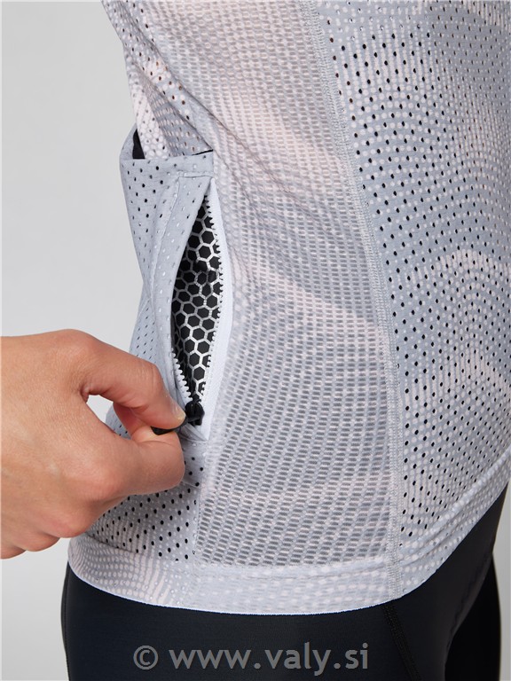 Sprednji in zadnji del sta izdelana iz perforirane tkanine, ki omogoča stalen pretok zraka in svežino, medtem ko tehnologija Pixel na zadnjem žepu skrbi za vašo varnost in vidljivost.