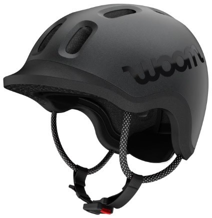 Woom Ready čelada se odlično prilega glavi in nudi odlično zaščito glave ( odbojni šild (vizir) spredaj, odsevni znaki, enostavno nastavljanje obsega in opcijsko dodatna namestitev varnostne luči na čelado).