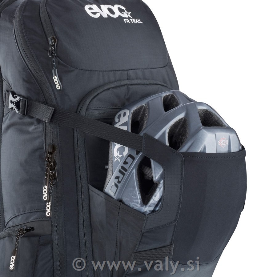 Evoc FR Enduro ima zaščito za hrbet (želvo), dva predala, prostor za orodje, možnost pritrditve običajne in full face čelade, pokrivalo za dež in blato, prostor za meh, možnost pritrditve ščitnikov, žep za očala ( goggle )in zemljevid, zanko za ključe, piščal, zaščito za zadrgo, odsevnike na zadrgi, odsevne trakove, trak za pritrditev luči. Posebna Team kolekcija je posebna serija nahrbtnikov, ki nastajajo v sodelovanju z vrhunskimi kolesarji. Kot dodatek ima Evoc FR Trail Team model majhen žepek v ledvenem pasu.