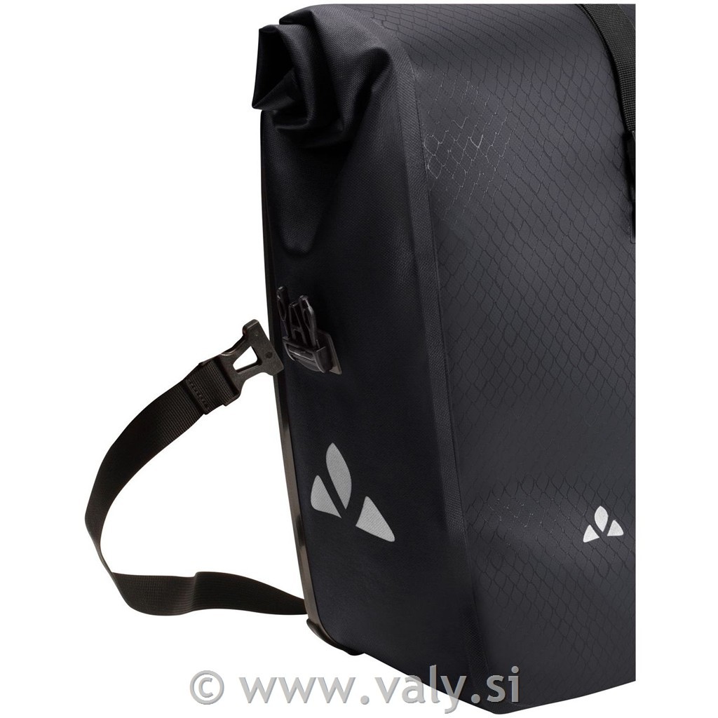 VAUDE Aqua Back Double so združljive z večino standardnih zadnjih prtljažnikov in omogočajo enostavno prilagajanje širine nosilcev. Odstranljivi nosilni trakovi dodatno povečajo praktičnost, ko torbe snamete s kolesa.