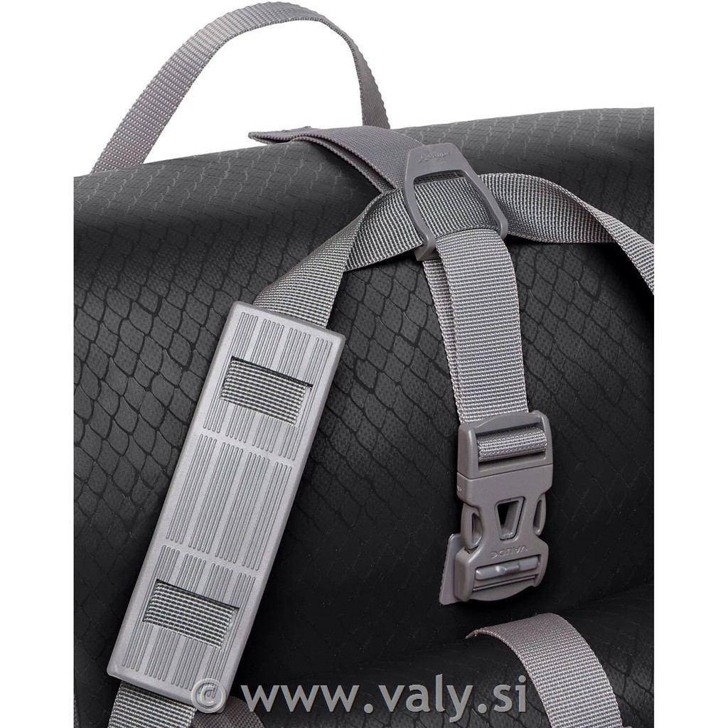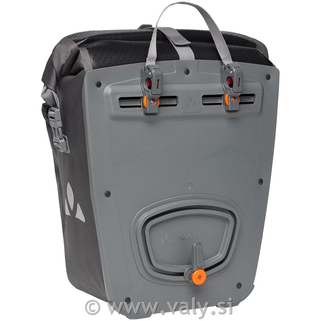 VAUDE Aqua Back Double so združljive z večino standardnih zadnjih prtljažnikov in omogočajo enostavno prilagajanje širine nosilcev. Odstranljivi nosilni trakovi dodatno povečajo praktičnost, ko torbe snamete s kolesa.