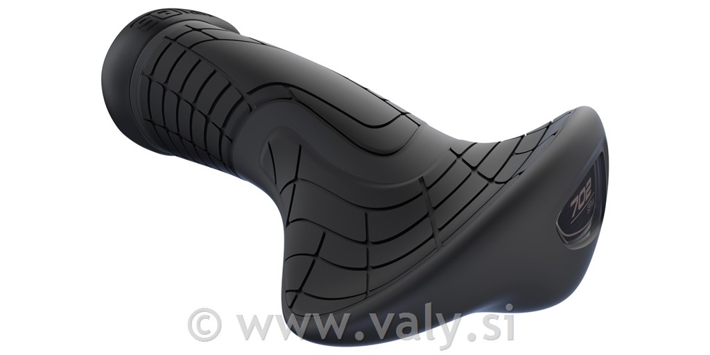 Reliefno krilo ročaja, ki se nahaja na samem robu in sega globoko navzdol, sprosti prostor za varen oprijem ročaja v vseh situacijah. Dvignjen konec ročaja dvigne stran roke in odlično podpira roko. Notranji nivo je višji in tako zagotavlja naraven položaj roke ter posebej razbremeni ulnarni, medialni živec in prehod karpalnega kanala. SQlab ergonomski ročaj 702 nudi varen oprijem za prste in optimalno oporo na sprednji in spodnji strani z dvigom v obliki valov. Ročaj nudi dobro blaženje udarcev in udobje na zunanji strani roke. Različne mešanice gume zagotavljajo popoln oprijem in visoko udobje. Uporabljeni so samo najboljši možni materiale. To vam zagotavlja dolgo življenjsko dobo in brez lepljive gume.