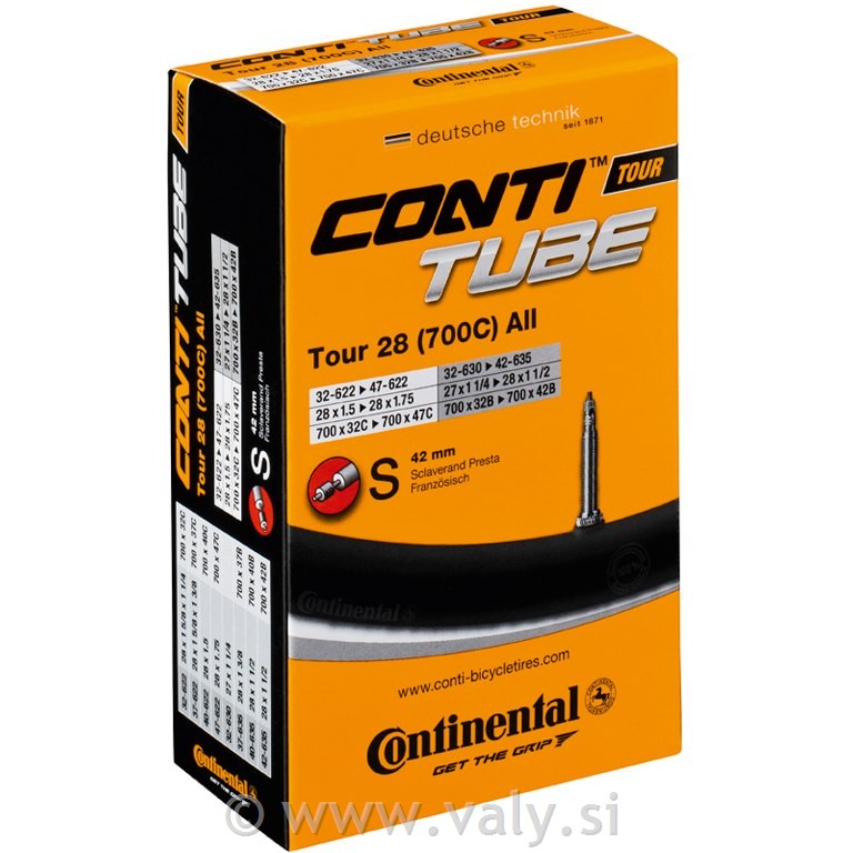 Continental Tour 28 all zračnica za treking 28" kolesa. Continental zračnica je primerna za dimenzije plašča od 32/47- 622/642 ali 32/47x700.