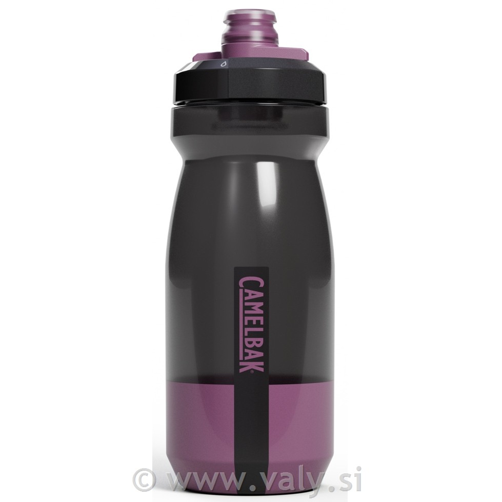 Bidon Camelbak Podium prostornine 0,62 l. Bidon narejen iz silikona in ne plastike. Ustnik Jet Valve preprečuje izlitje mercury night fall