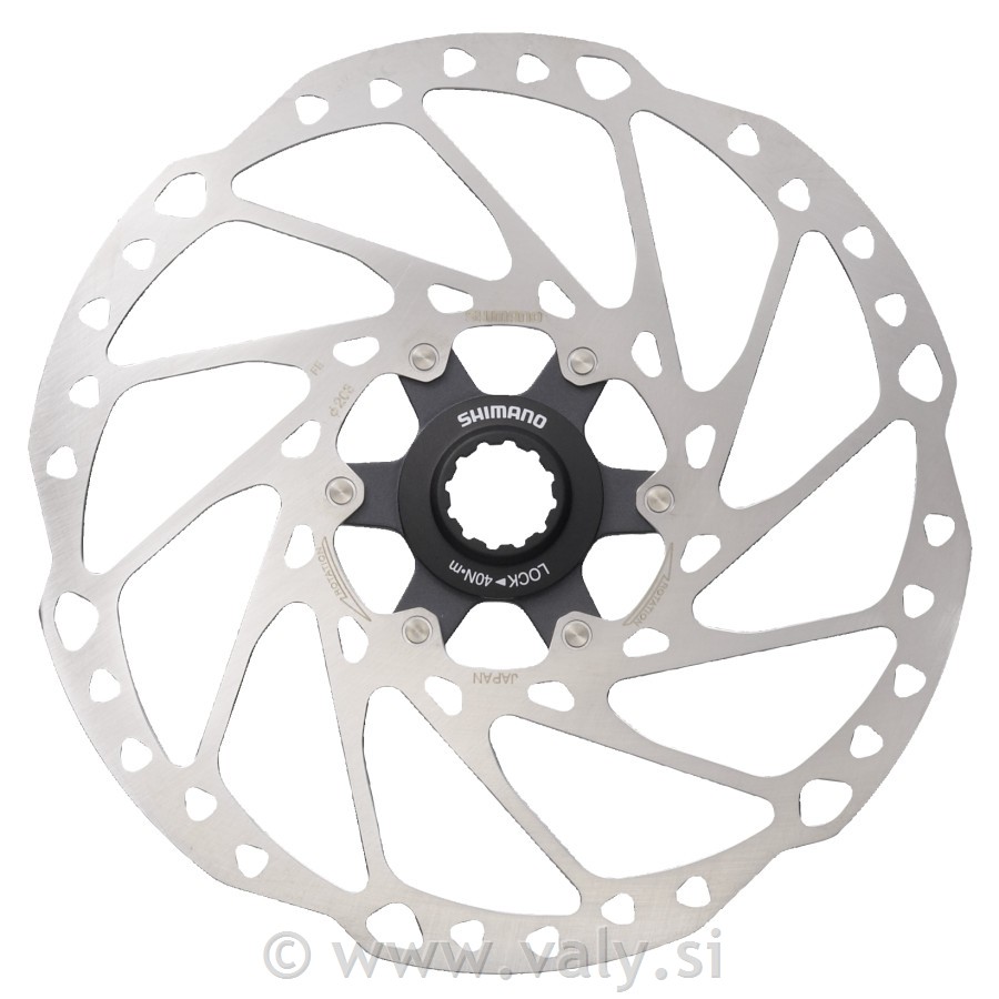 Rotor za disc Shimano SLX SM-RT64 CL. Disk je deloma izdelan iz aluminija, kar pripomore k nižjo temperaturi rotorja , kakor pri jeklenih rotorjih.