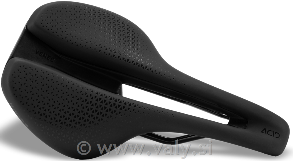 - Ergo-relief kanal s centralnim izrezom: zmanjšuje pritisk na mehka tkiva in omogoča boljšo cirkulacijo med vožnjo.