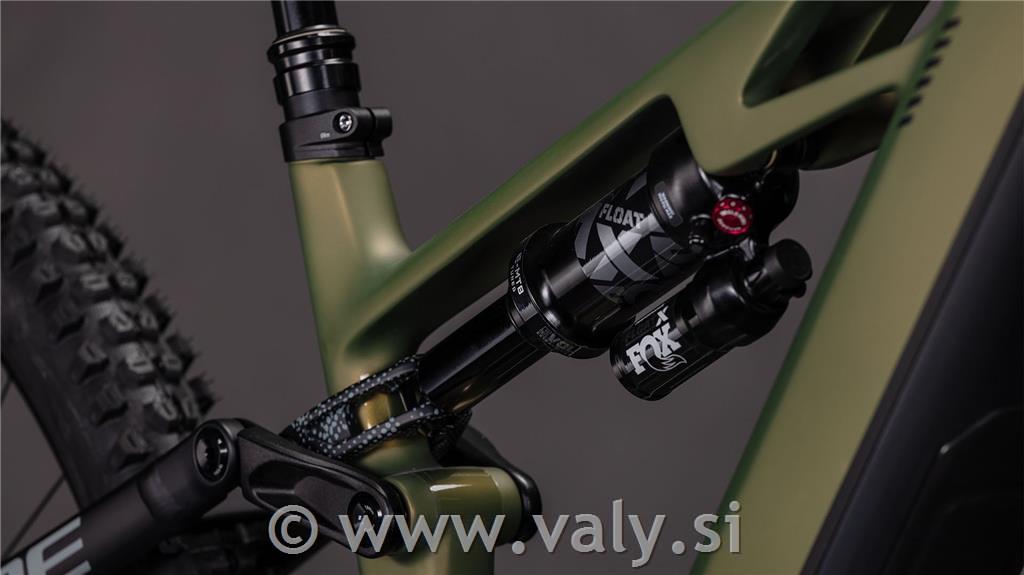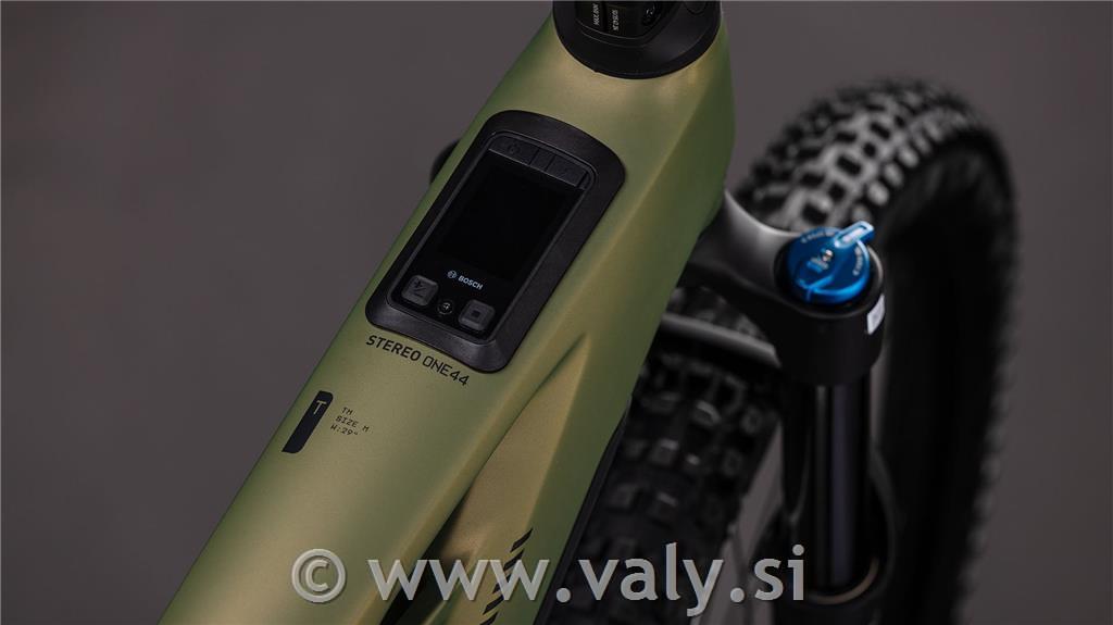 Cube Stereo Hybrid ONE44 HPC TM 800 električno polnovzmeteno karbonsko kolo ima 150 mm vilice Fox Float 36 Performance Grip in zadnji amortizer (140mm) Fox Float X Performance. Bosch najnovejši motor Performance CX (5. generacija) in baterija z zmogljivostjo 800 Wh zagotavljata do 100 Nm navora, ki vam omogoča vzpone tudi v najbolj strme klance. Električne prestave Sram GX Eagle AXS™ Transmission 1x12 omogočajo gladko prestavljanje, medtem, ko močne, progresivne 4-batne hidravlične kolutne zavore Sram Maven z 203 mm rotorji omogočajo varno in hitro zaviranje.