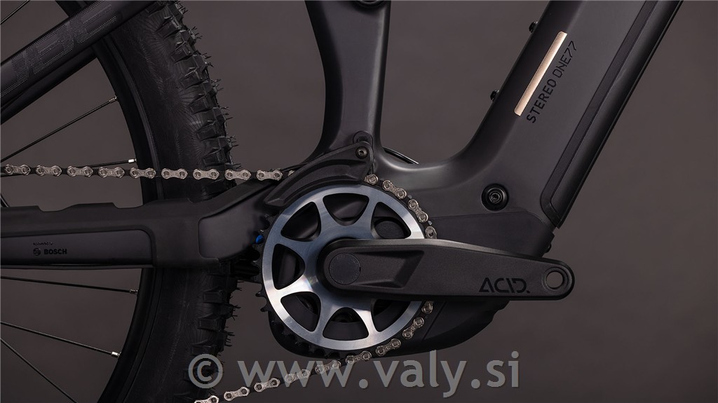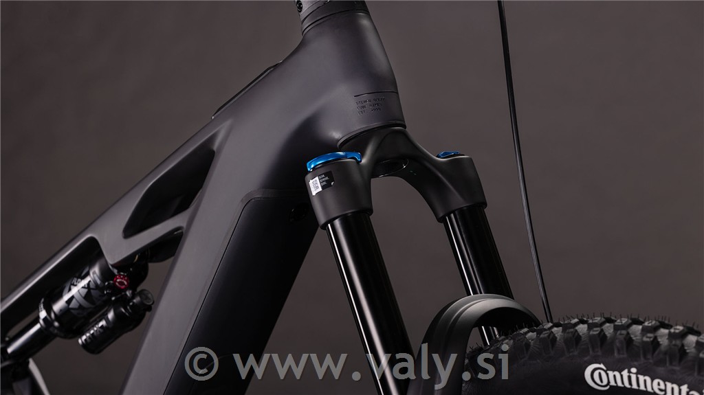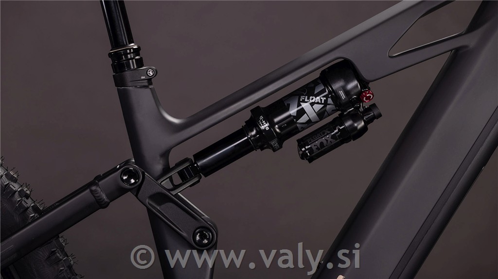 Za brezhiben videz poskrbi skrita notranja napeljava kablov, nastavljiv krmilni ležaj pa omogoča, da prilagodite vodljivost in geometrijo po svojem okusu. Zmogljiv Bosch CX motor je diskretno nameščen v karbonski spodnji cevi skupaj z zmogljivo 800 Wh PowerTube baterijo, ki zagotavlja izjemen doseg in dolgo vzdržljivost. Zadaj se nahaja robusten aluminijast trikotnik z UDH nosilcem, ki zagotavlja trpežnost in odpornost. Dodan je tudi Direct Mount vodilo verige, ki ohranja pogon stabilen tudi na najzahtevnejših terenih.