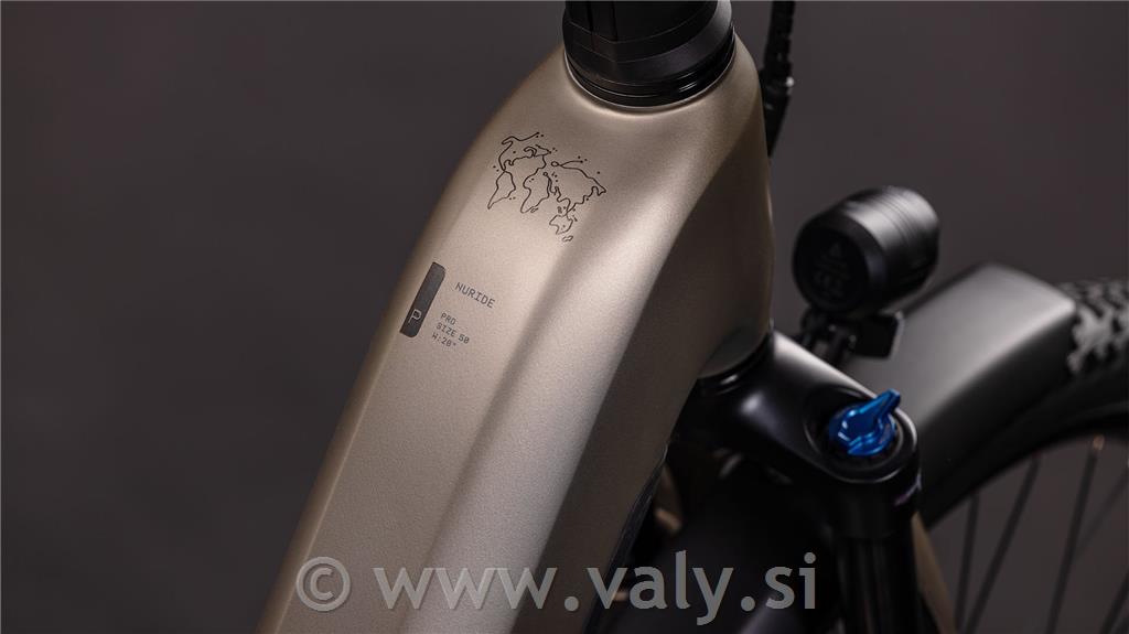 Cube Nuride Hybrid Pro 800 Flashstone'n'Chrome je zmogljivo električno gorsko kolo (e-MTB), zasnovano za vse, ki iščejo udobje, moč in vsestranskost v enem paketu. Opremljeno je z Bosch Performance Line CX motorjem in 800 Wh PowerTube baterijo, ki zagotavljata dolge vožnje brez skrbi. Aluminijast okvir z notranjo napeljavo kablov in sistemom za pritrjevanje prtljažnika SIC 2.0 omogoča čist videz in enostavno montažo dodatkov. S hidravličnimi disk zavorami Shimano, 100 mm vzmetno vilico SR Suntour in Schwalbe Smart Sam pnevmatikami je pripravljeno na vsak teren.