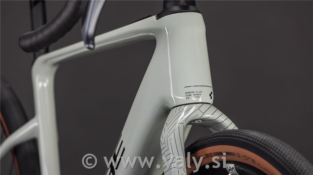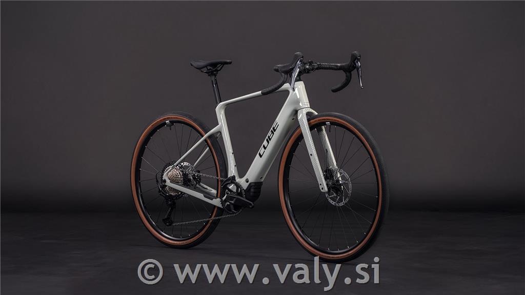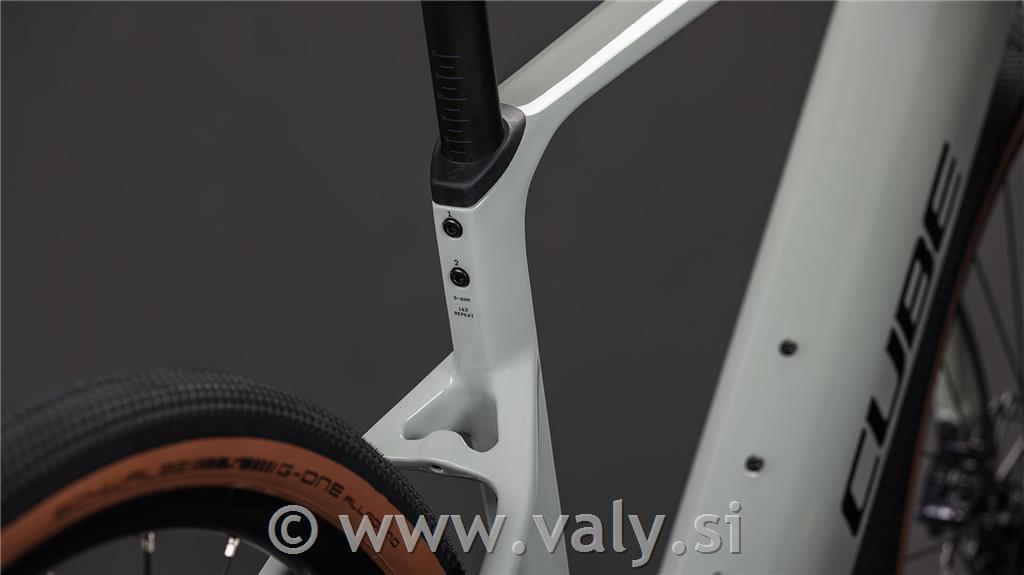 CUBE Nuroad Hybrid C:62 Race 400X – lahko karbonsko električno gravel kolo z Bosch SX motorjem in Shimano GRX 12 prestavami. Moč, eleganca in svoboda vožnje.
