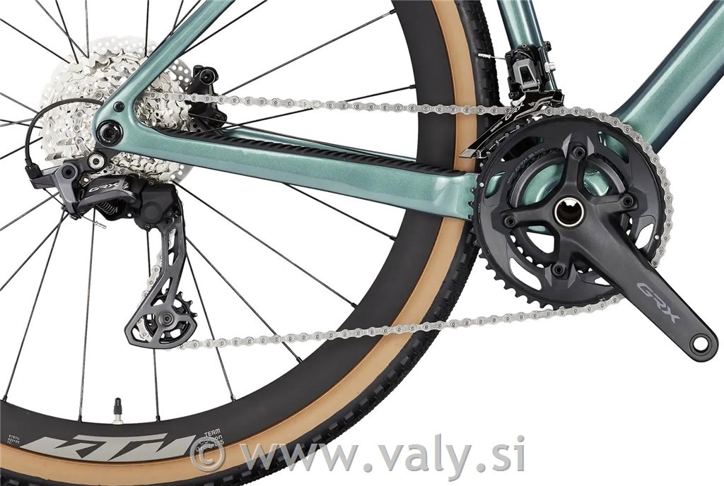 KTM Gravelator Elite 2x je karbonsko gravel kolo s Shimano GRX 2x12, integriranim shranjevanjem in vrhunsko vsestranskostjo za avanture.