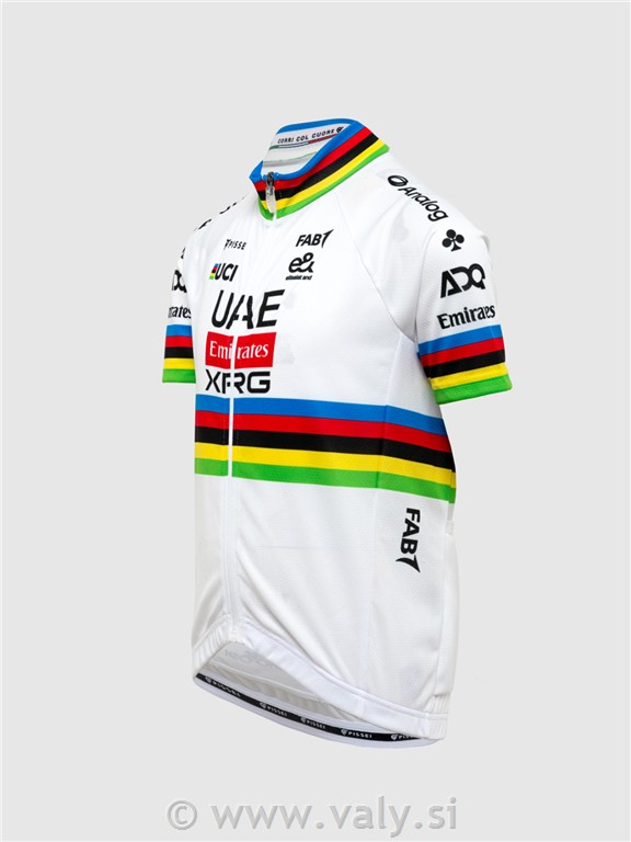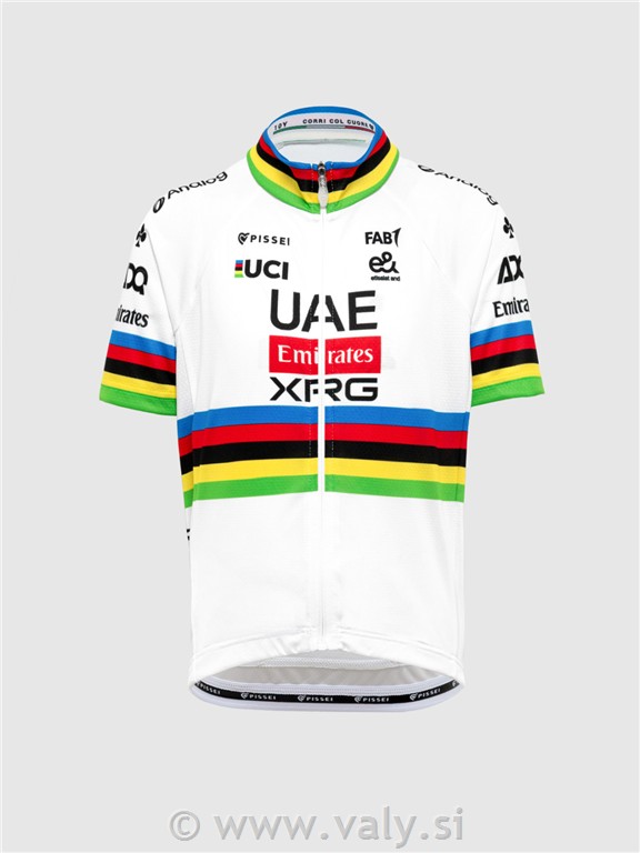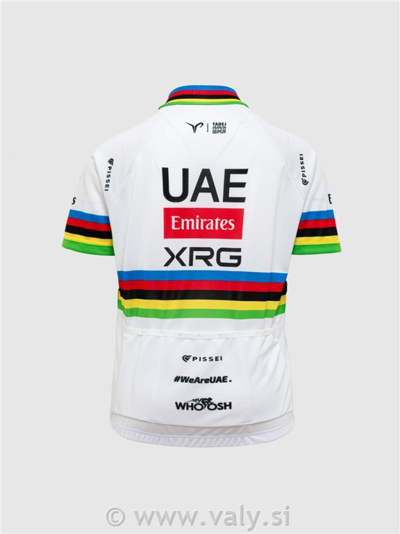 Otroška kolesarska majica UAE XRG svetovni prvak je kvalitetna kolesarska majica, kot jo uporabljajo kolesarji profesionalne ekipe UAE XRG in Tadej Pogačar.